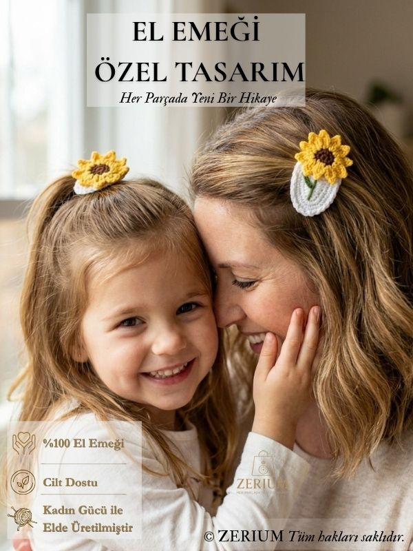 Çocuk ve Kadın Örgü Çıt Çıt Toka El Emeği Ayçiçek Serisi