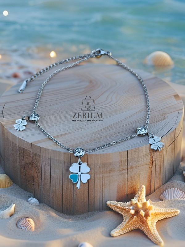 Aşkın Mavi Adımları Taşlı Zarif Şık Kadın Çelik Halhal 316L Kararma Yapmaz