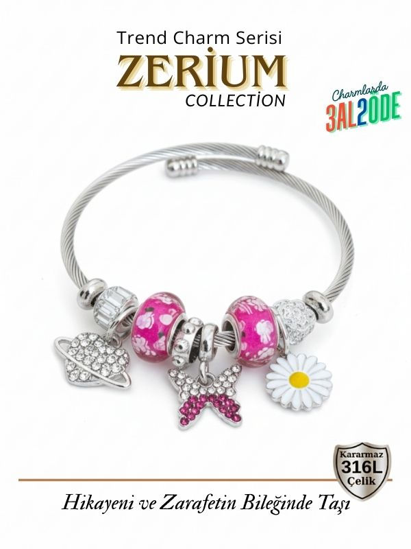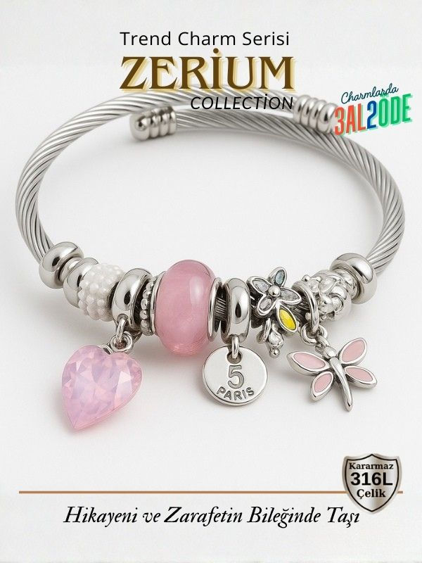 Kendi hikayenizi yaratın... ZERIUM kadın çelik charm bileklik koleksiyonunu keşfedin. Kararmaz, altın ve gümüş renk detaylarıyla parlayan ve zamansız şıklığı yansıtan premium tasarımlar.
